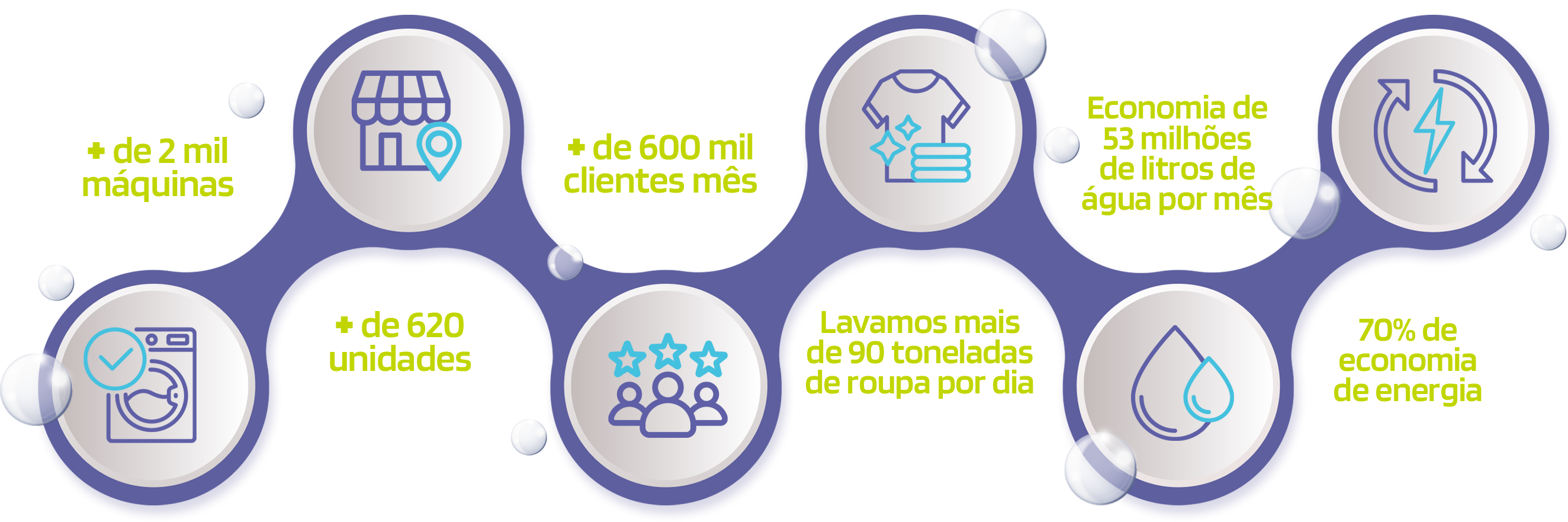 Máquinas de última geração, desenvolvidas para lavar suas roupas com eficiência e economia de recursos. Elas são automáticas, dosando cada produto e fazendo o trabalho pesado para você, sem desperdícios.